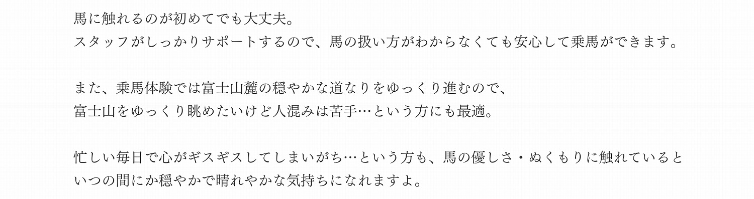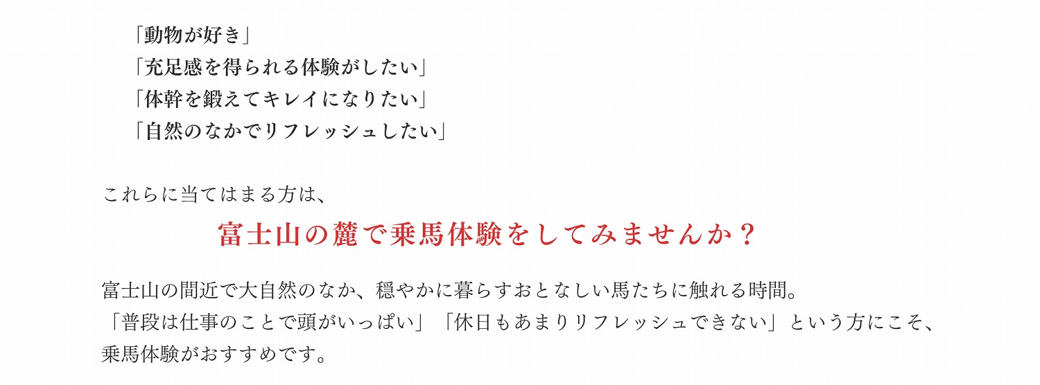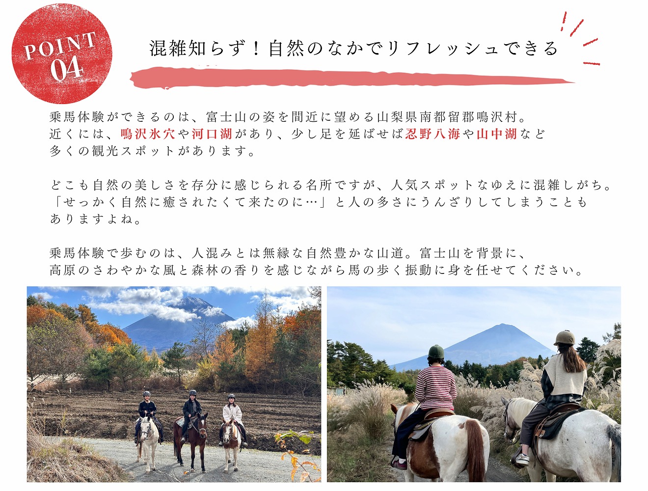 【乗馬体験】初めて馬と触れ合う方も大歓迎!富士山の絶景を見ながら馬に癒される