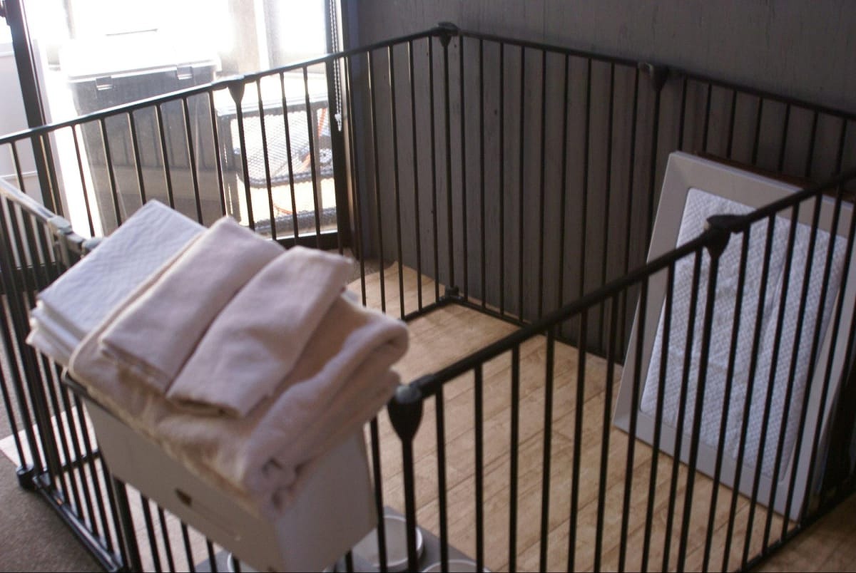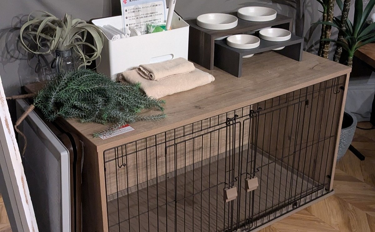 愛犬用備品 トイレトレー、トイレシート(1頭5枚まで)、蓋つきゴミ箱、エチケット袋、サークル、食器(大小2枚ずつ)、バスタオル、フェイスタオル、ウェットティッシュ、消臭ミスト、コロコロ