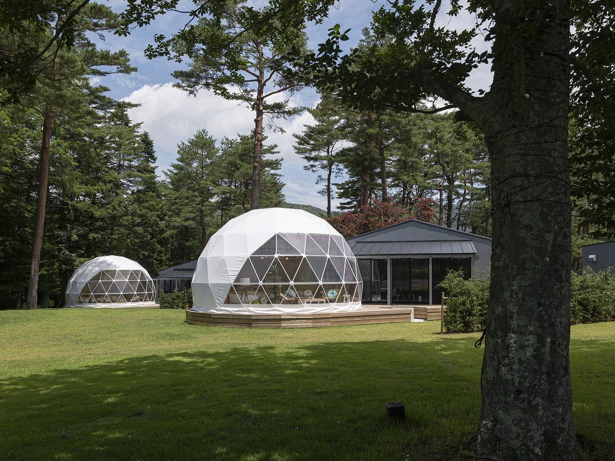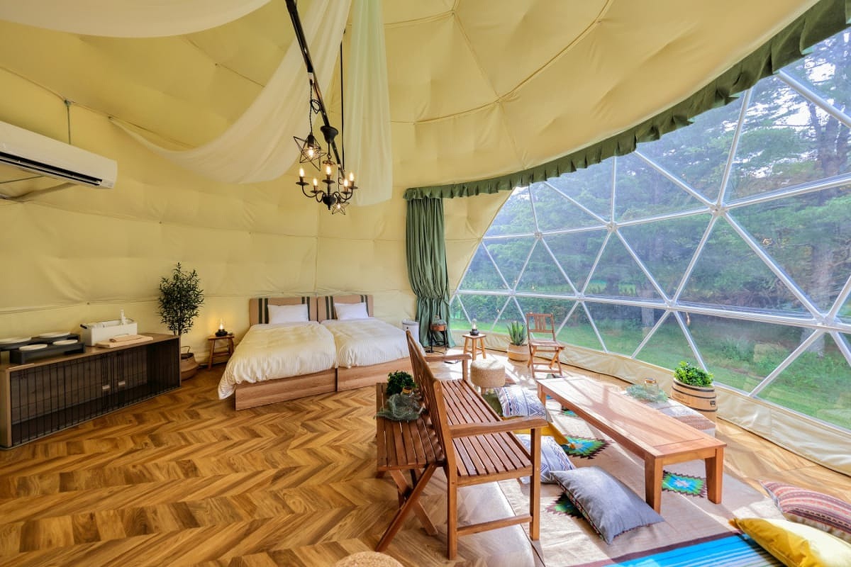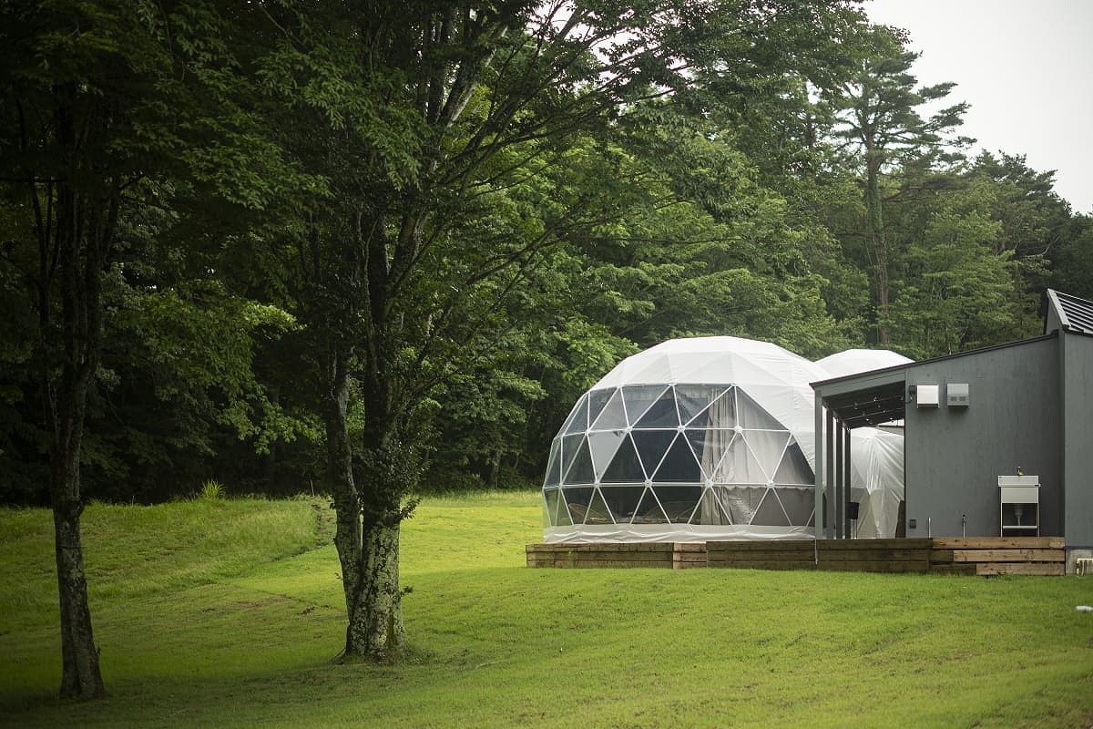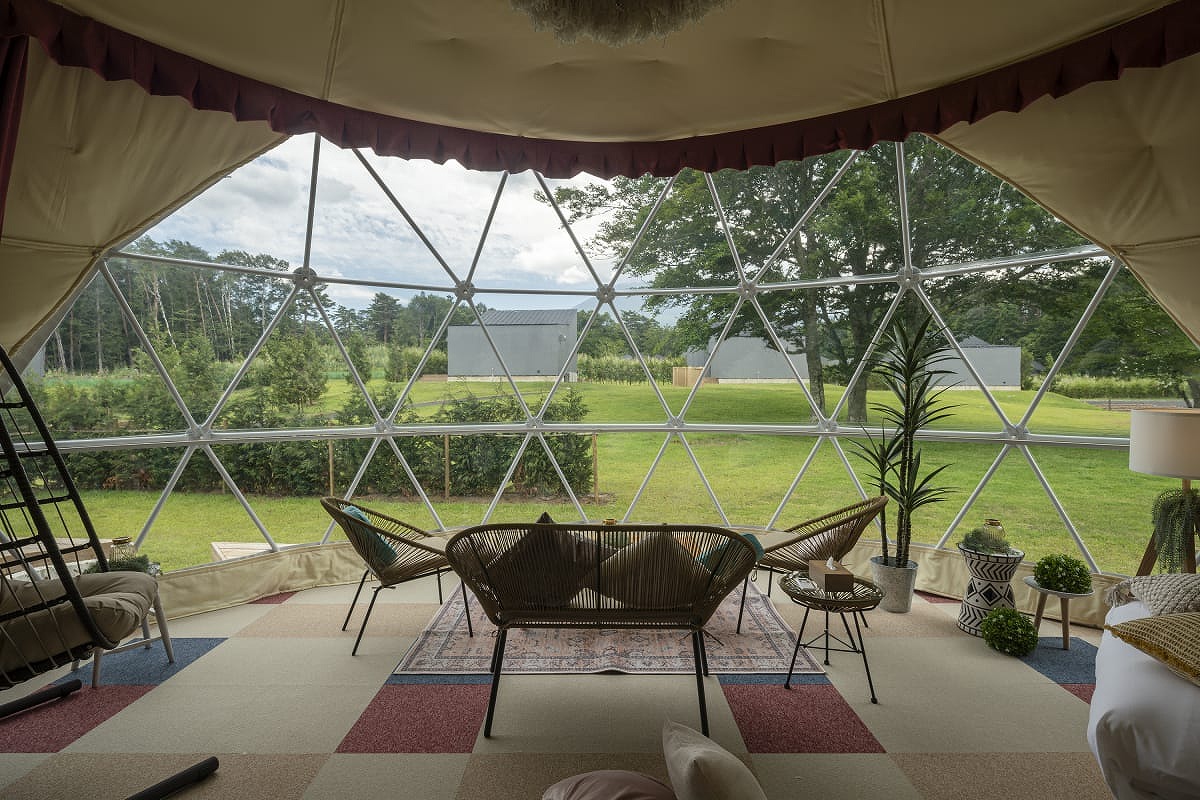 ペット・愛犬と泊まれる、自然に溶け込むような直径7mのドーム型グランピングタイプ。