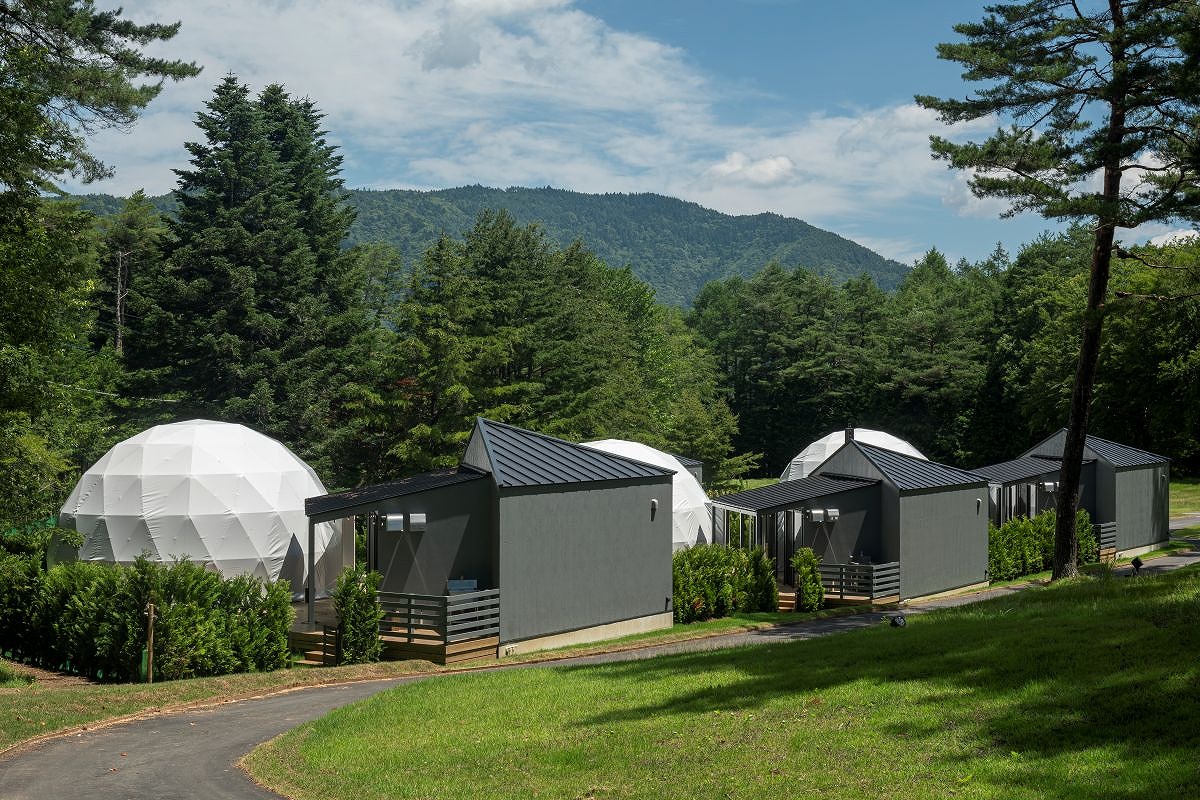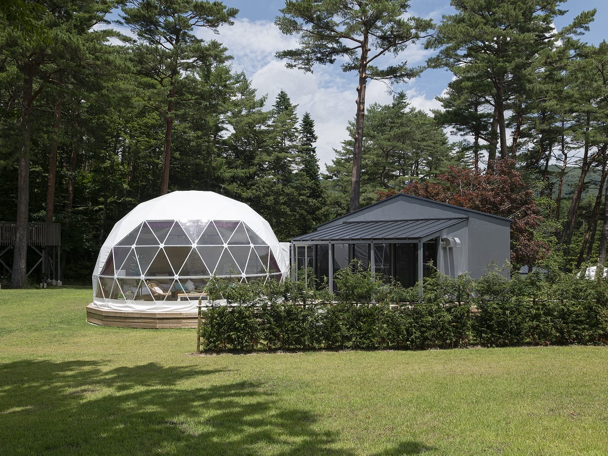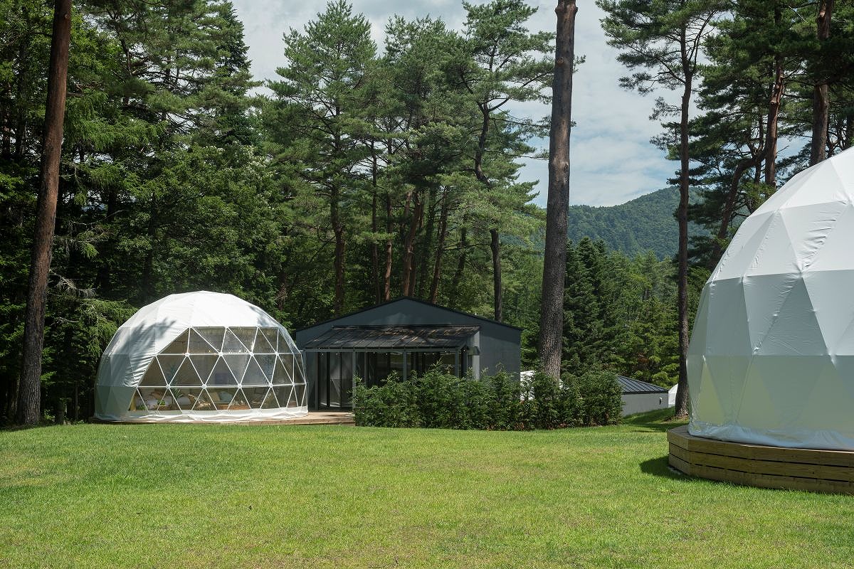 ペット・愛犬と泊まれる、自然に溶け込むような直径7mのドーム型グランピングタイプ。