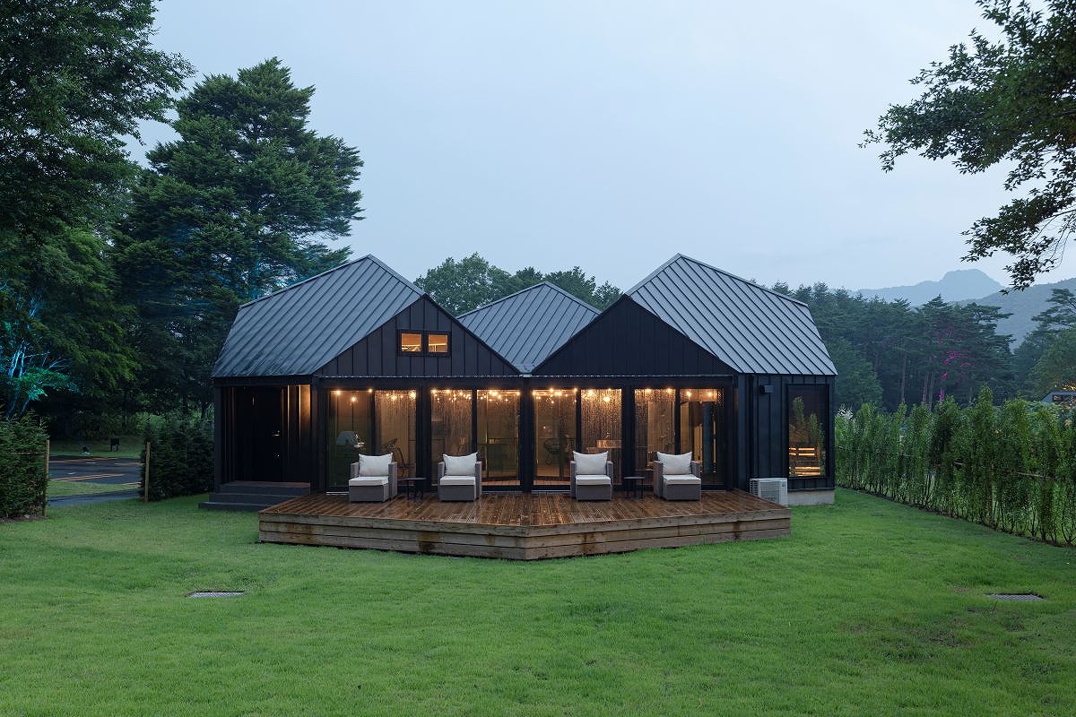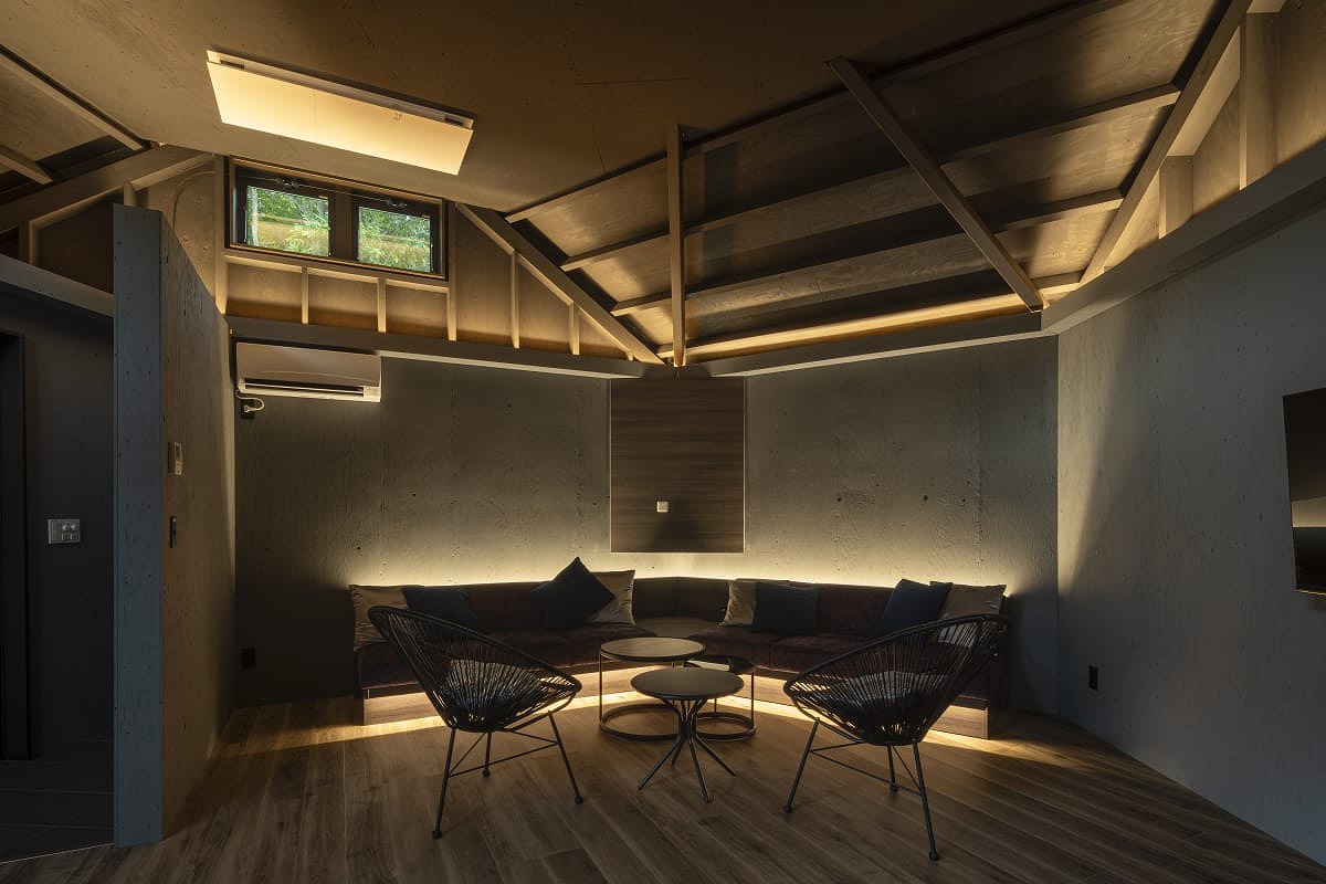 6角形を3つ合わせたような独特な形状のプライベートヴィラタイプ。